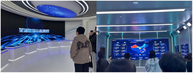 第三站,两个专业师生先后来到芜湖市大数据公司,参观了“东数西算”芜湖市集群展示中心和长三角枢纽芜湖集群算力公共服务平台,了解了芜湖集群的发展布局,加深了对数字经济的理解。