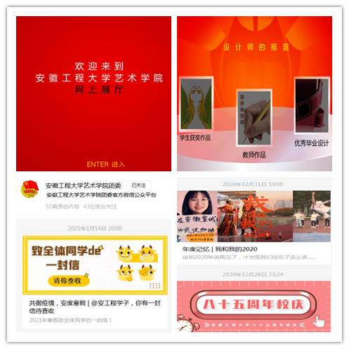 学院以提高青年学生的文化品位为导向,紧密结合学院实际和专业学科特点,构建线上线下全方位的文化育人体系。把中华优秀传统文化融入到日常的思想政治教育过程中,开展廉政文化教育、感恩教育、纪律教育等,涵育师生品行,引领社会风尚。学院还结合传统节庆日、重大事件和开学季、毕业季等关口,以学生会、学生社团为抓手开展的各类学生喜闻乐见的活动,形成“一专业一品牌”的特色文化品牌,提升学院文化的内涵和品位,做到校园文化活动进班级、入社团。利用地方传统手工艺、非物质文化遗产资源,加强学生传统文化和工匠精神教育。编辑出版了《百件文物背后的芜湖故事》手绘本、编印了《鸠兹古镇手绘地图》。编印了《春华秋实-设计师德摇篮》校友风采录(深圳篇),选登40多位在深圳工作的毕业生设计作品与成果,提高学生专业认同感。建成了校内传统文化教育基地《徽州木雕馆》,展出由芜湖画家张月东先生捐赠的863件木雕和20多件绘画作品,让学生亲身感受中国传统文化的博大精深。定期开展博士、教授、杰出校友论坛,举办了中国经典动画赏析、经典广告赏析、民乐赏析、创业成长经历分享等专题报告会,对学生开展美育和创新创业教育。在毕业季工作中,将感恩教育与党团活动、日常管理、毕业服务结合起来,积极营造融洽和谐、诚信感恩、健康活泼、情浓意切的毕业季文化氛围,切实发挥“最后一堂课”教育功能。
